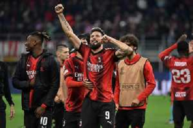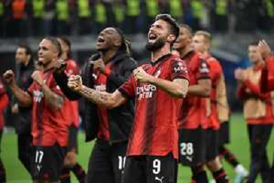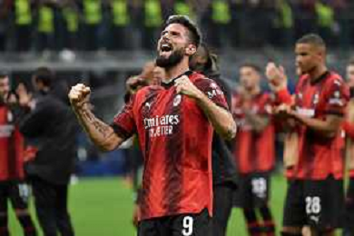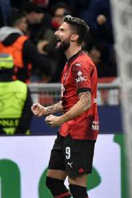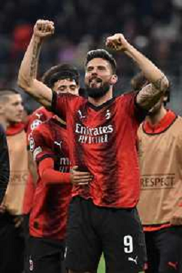Milan vs Paris Saint-Germain nella foto Olivier Giroud (Milan) esultanza a fine partita Milano 07-11-2023 Stadio Giuseppe Meazza - San Siro UEFA Champions League fase a gironi 4a giornata - Gruppo F foto Roberto Garavaglia/ag. Aldo Liverani sas/ AGENZIA ALDO LIVERANI SAS