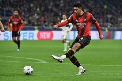Milan vs Paris Saint-Germain nella foto Theo Hernandez (Milan) prova il gol su punizione Milano 07-11-2023 Stadio Giuseppe Meazza - San Siro UEFA Champions League fase a gironi 4a giornata - Gruppo F foto Roberto Garavaglia/ag. Aldo Liverani sas/ AGENZIA ALDO LIVERANI SAS