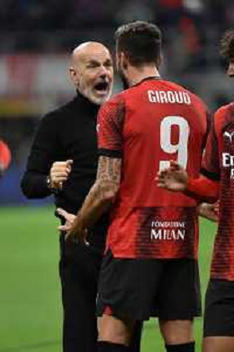 Milan vs Paris Saint-Germain nella foto Stefano Pioli allenatore Milan e Olivier Giroud (Milan) esultanza a fine partita Milano 07-11-2023 Stadio Giuseppe Meazza - San Siro UEFA Champions League fase a gironi 4a giornata - Gruppo F foto Roberto Garavaglia/ag. Aldo Liverani sas/ AGENZIA ALDO LIVERANI SAS