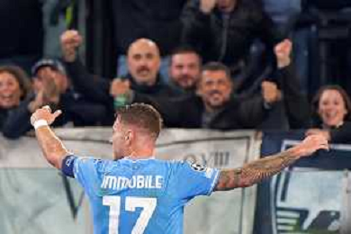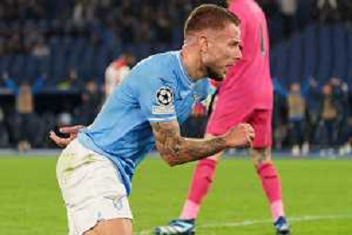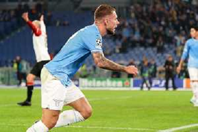 Ciro Immobile of SS Lazio celebrates after scoring a goal with teammates during the UEFA Champions League match SS Lazio vs Feyenoord at the Olympic stadium in Rome on November 7, 2023. Photo Emmanuele Mastrodonato/ag. Aldo Liverani sas/AGENZIA ALDO LIVERANI SAS