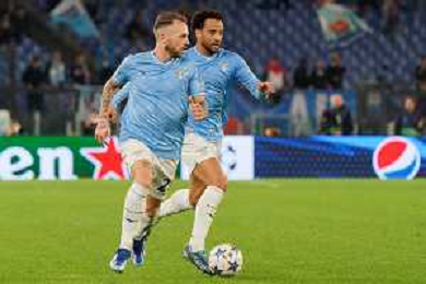 Felipe Anderson and Manuel Lazzari of SS Lazio during the UEFA Champions League match SS Lazio vs Feyenoord at the Olympic stadium in Rome on November 7, 2023. Photo Emmanuele Mastrodonato/ag. Aldo Liverani sas/AGENZIA ALDO LIVERANI SAS