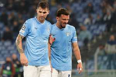 Alessio Romagnoli of SS Lazio and Luca Pellegrini of SS Lazio during the UEFA Champions League match SS Lazio vs Feyenoord at the Olympic stadium in Rome on November 7, 2023. Photo Emmanuele Mastrodonato/ag. Aldo Liverani sas/AGENZIA ALDO LIVERANI SAS