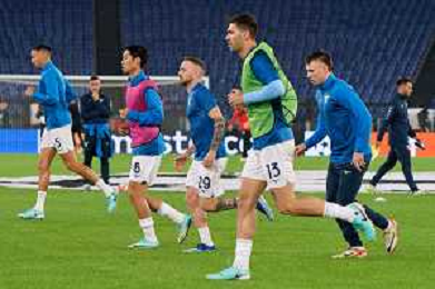 Elseid Hysaj of SS Lazio, Luis Alberto of SS Lazio, Manuel Lazzari of SS Lazio warms up during the UEFA Champions League match SS Lazio vs Feyenoord at the Olympic stadium in Rome on November 7, 2023. Photo Emmanuele Mastrodonato/ag. Aldo Liverani sas/AGENZIA ALDO LIVERANI SAS