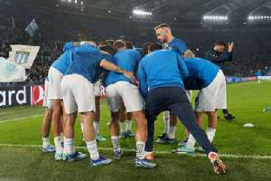 The S.S. Lazio players hug each other prior the UEFA Champions League match SS Lazio vs Feyenoord at the Olympic stadium in Rome on November 7, 2023. Photo Emmanuele Mastrodonato/ag. Aldo Liverani sas/AGENZIA ALDO LIVERANI SAS