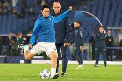 Daichi Kamada of SS Lazio warms up during the UEFA Champions League match SS Lazio vs Feyenoord at the Olympic stadium in Rome on November 7, 2023. Photo Emmanuele Mastrodonato/ag. Aldo Liverani sas/AGENZIA ALDO LIVERANI SAS