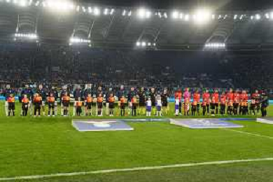 S.S. Lazio and Feyenoord teams lined up during the UEFA Champions League match SS Lazio vs Feyenoord at the Olympic stadium in Rome on November 7, 2023. Photo Emmanuele Mastrodonato/ag. Aldo Liverani sas/AGENZIA ALDO LIVERANI SAS
