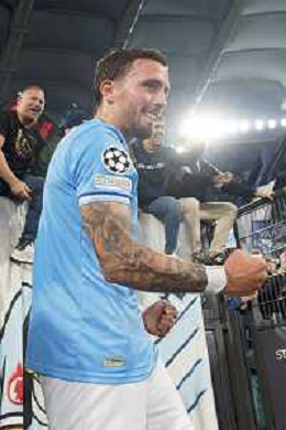 Mattia Zaccagni of SS Lazio applauds fans during the UEFA Champions League match SS Lazio vs Feyenoord at the Olympic stadium in Rome on November 7, 2023. Photo Emmanuele Mastrodonato/ag. Aldo Liverani sas/AGENZIA ALDO LIVERANI SAS