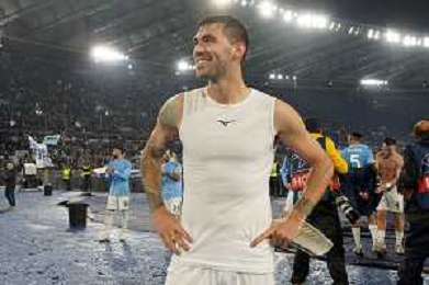 Alessio Romagnoli of SS Lazio celebrates the victory during the UEFA Champions League match SS Lazio vs Feyenoord at the Olympic stadium in Rome on November 7, 2023. Photo Emmanuele Mastrodonato/ag. Aldo Liverani sas/AGENZIA ALDO LIVERANI SAS