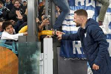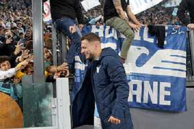 Ciro Immobile of SS Lazio celebrates the victory with fans during the UEFA Champions League match SS Lazio vs Feyenoord at the Olympic stadium in Rome on November 7, 2023. Photo Emmanuele Mastrodonato/ag. Aldo Liverani sas/AGENZIA ALDO LIVERANI SAS