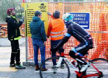 IMOLA 09 11 2023 PONTE DI VIALE DANTE: IL COMUNE HA FATTO POSIZIONARE 7 NUOVI CARTELLI CON LE INDICAZIONI DELLA VIABILITA PER RAGGIUNGERE LE ATTIVITA ECONOMICHE AL DI LA DEL FIUME.PRESENTE ANCHE ASSESSORE ELISA SPADA FOTO GIANNI SANNA-AG ALDO LIVERANI SAS