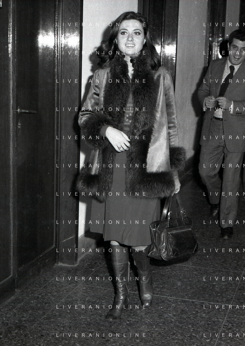 NEG-RETROSPETTIVA GIGLIOLA CINQUETTI CANTANTE NELLA FOTO GIGLIOLA CINQUETTI A MILANO NELL'ANNO 1974 PER IL PROCESSO CARTOLINE CANZONISSIMA AG ALDO LIVERANI SAS