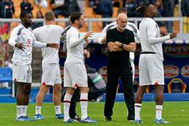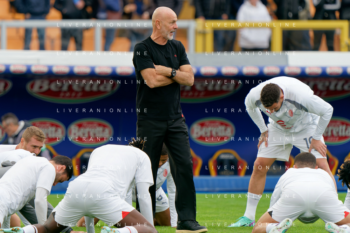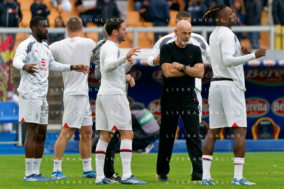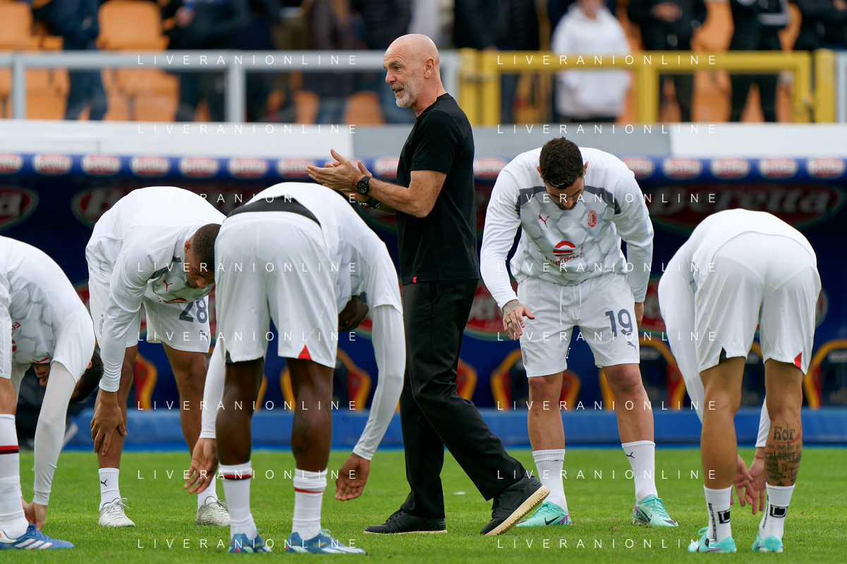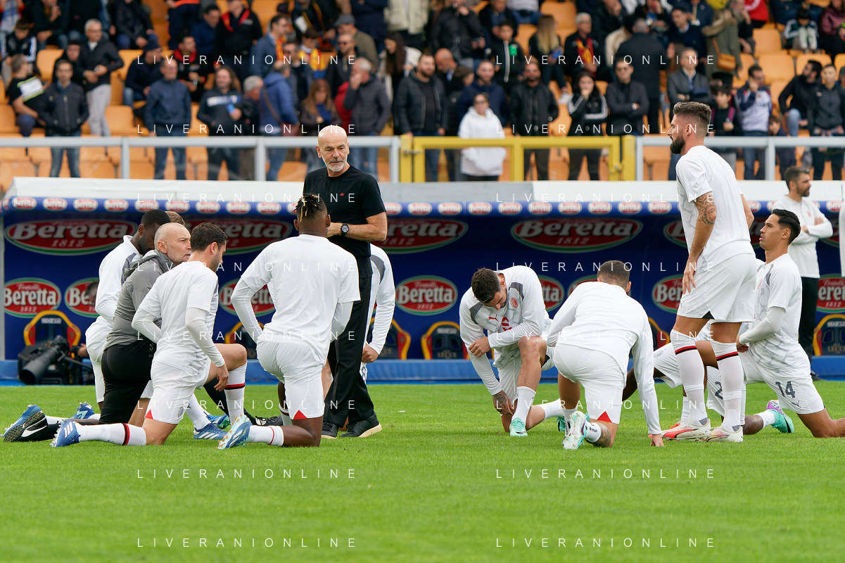 Players of AC Milan warms up with coach Stefano Pioli of AC Milan during the Italian soccer Serie A match US Lecce vs AC Milan on November 10, 2023 at Via del Mare Stadium in Lecce, Italy. Photo by Emmanuele Mastrodonato/ag. Aldo Liverani sas/AGENZIA ALDO LIVERANI SAS