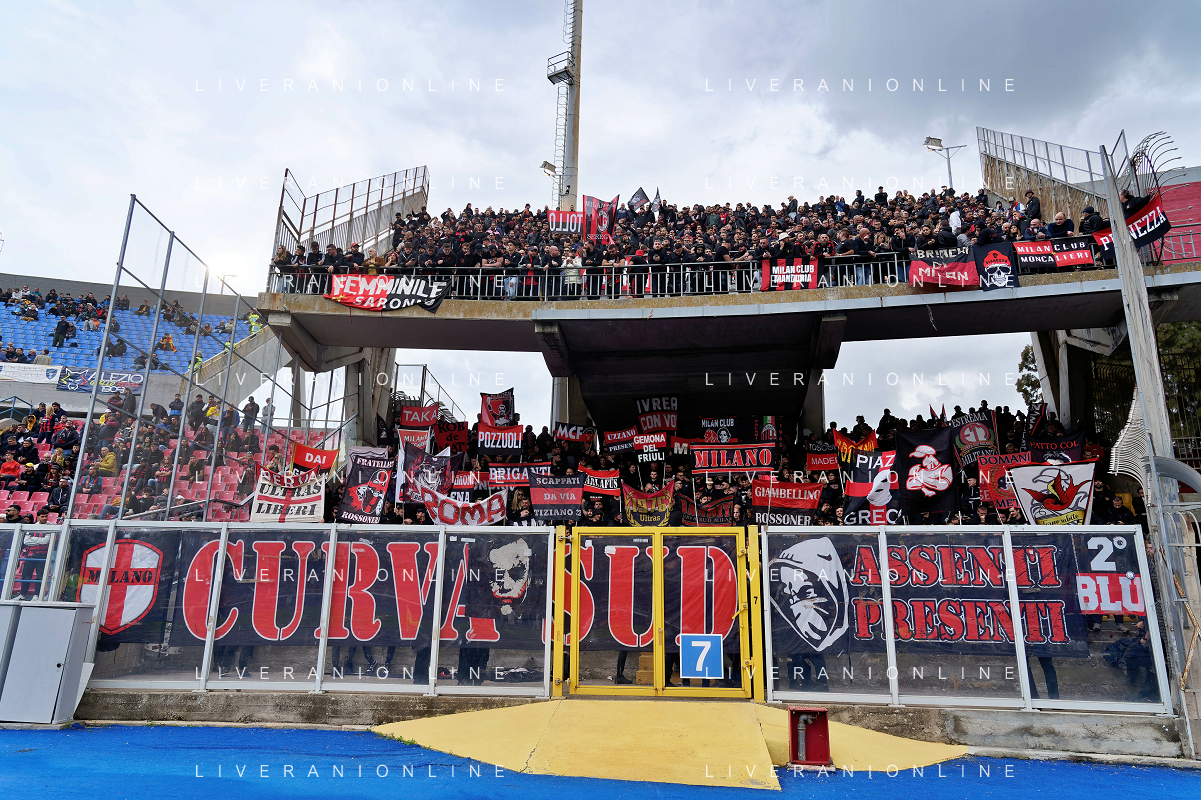 Supporters of AC Milan during the Italian soccer Serie A match US Lecce vs AC Milan on November 10, 2023 at Via del Mare Stadium in Lecce, Italy. Photo by Emmanuele Mastrodonato/ag. Aldo Liverani sas/AGENZIA ALDO LIVERANI SAS