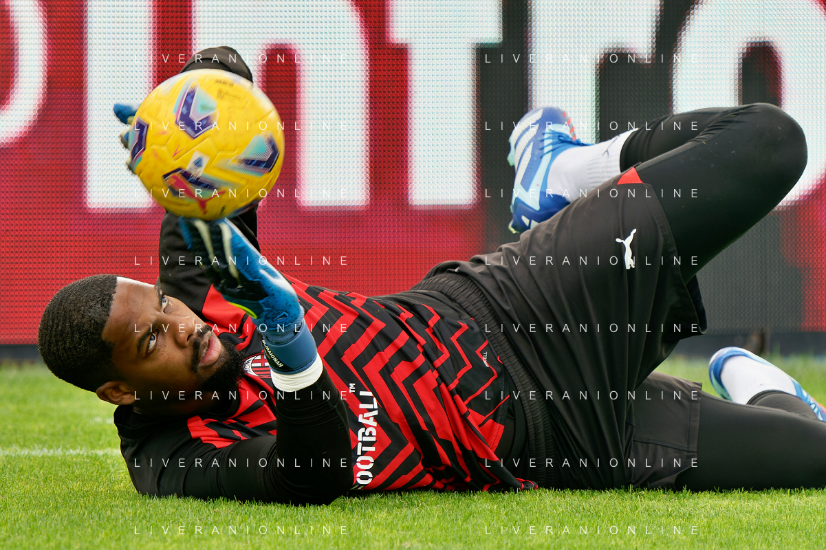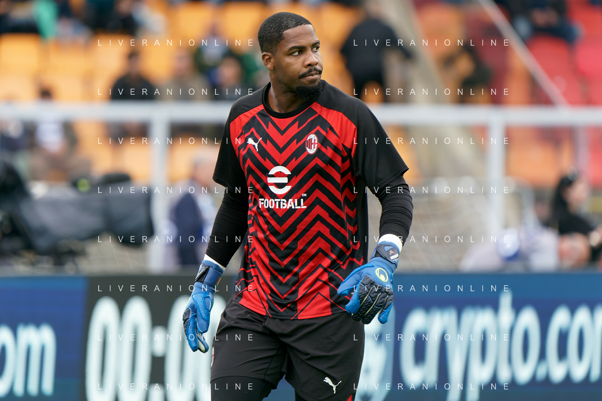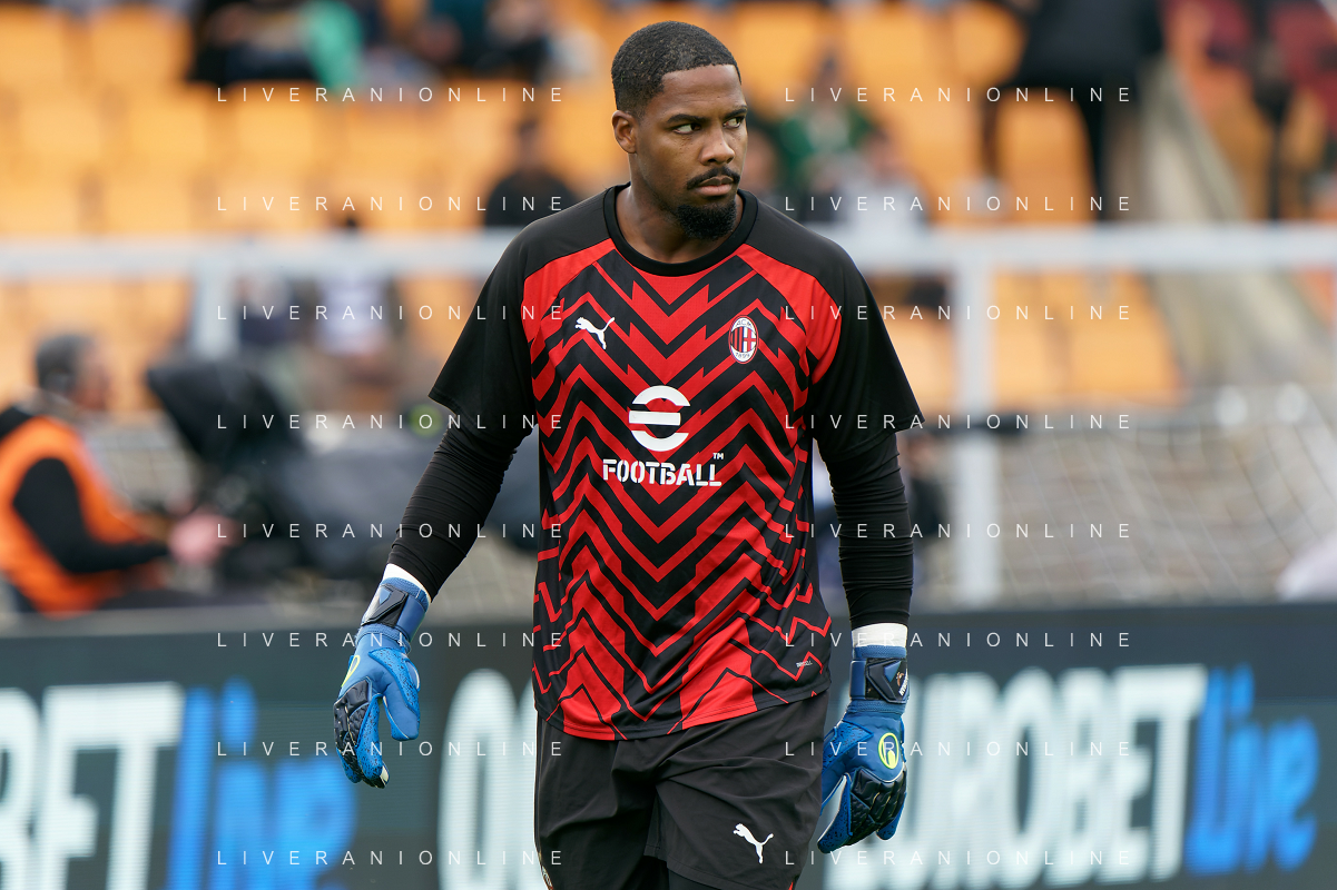 Mike Maignan of AC Milan during the Italian soccer Serie A match US Lecce vs AC Milan on November 10, 2023 at Via del Mare Stadium in Lecce, Italy. Photo by Emmanuele Mastrodonato/ag. Aldo Liverani sas/AGENZIA ALDO LIVERANI SAS