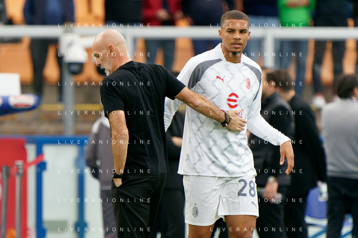 coach Stefano Pioli of AC Milan and Malick Thiaw of AC Milan during the Italian soccer Serie A match US Lecce vs AC Milan on November 10, 2023 at Via del Mare Stadium in Lecce, Italy. Photo by Emmanuele Mastrodonato/ag. Aldo Liverani sas/AGENZIA ALDO LIVERANI SAS