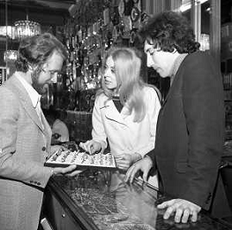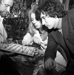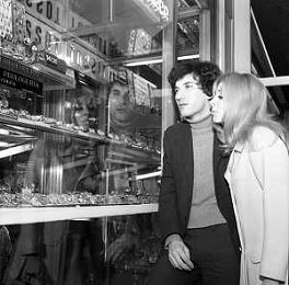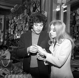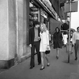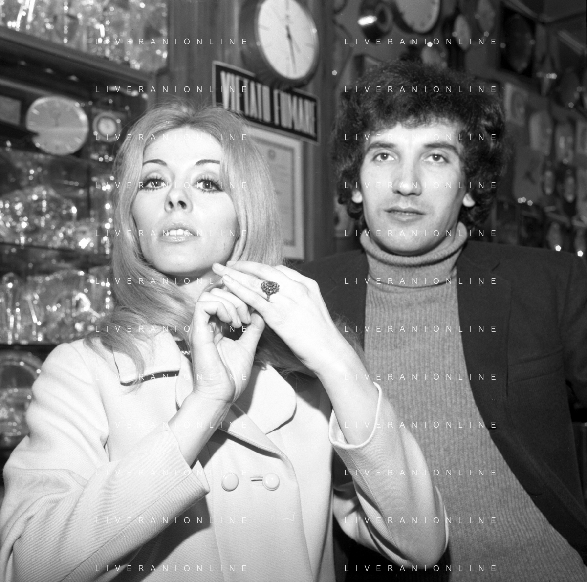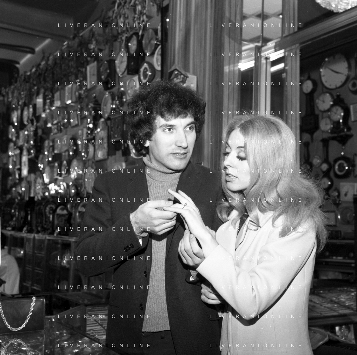 Neg- RETROSPETTIVA VITTORIA SOLINAS (MARIA SOLE) CANTANTE E ATTRICE NELLA FOTO CON IL MARITO ARMANDO STULA PER LE VIE DI MILANO NELL'ANNO 1970 AG ALDO LIVERANI SAS