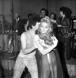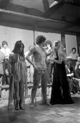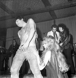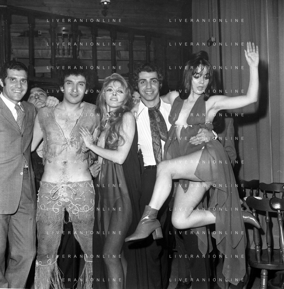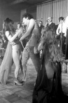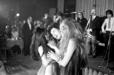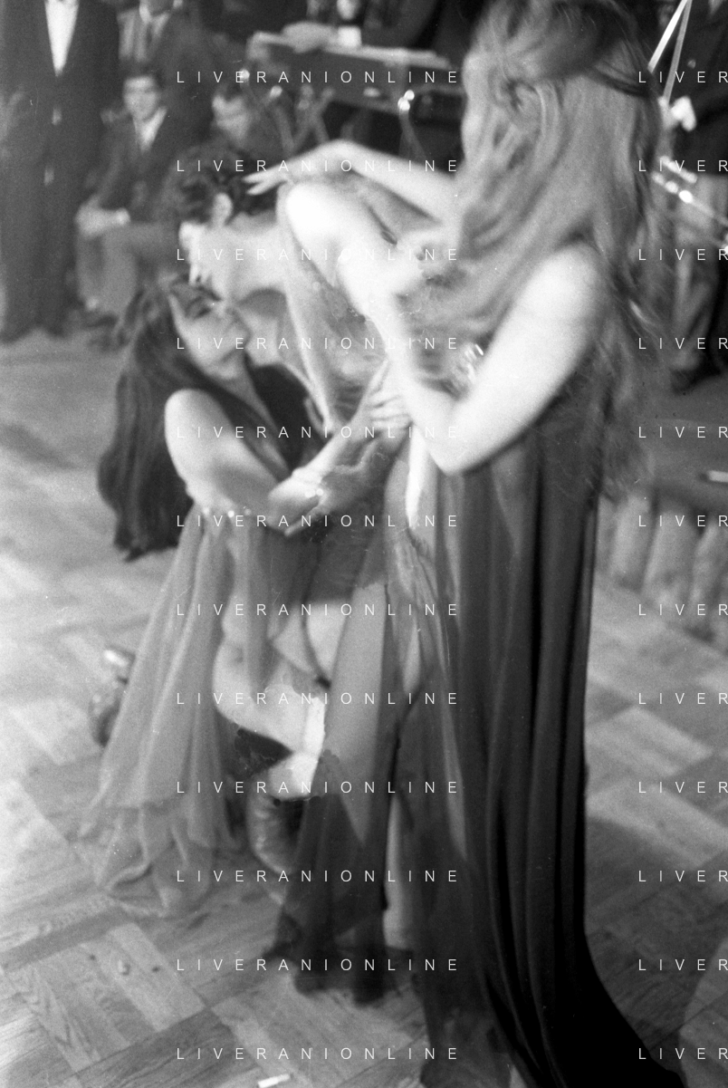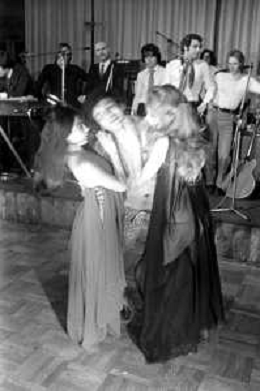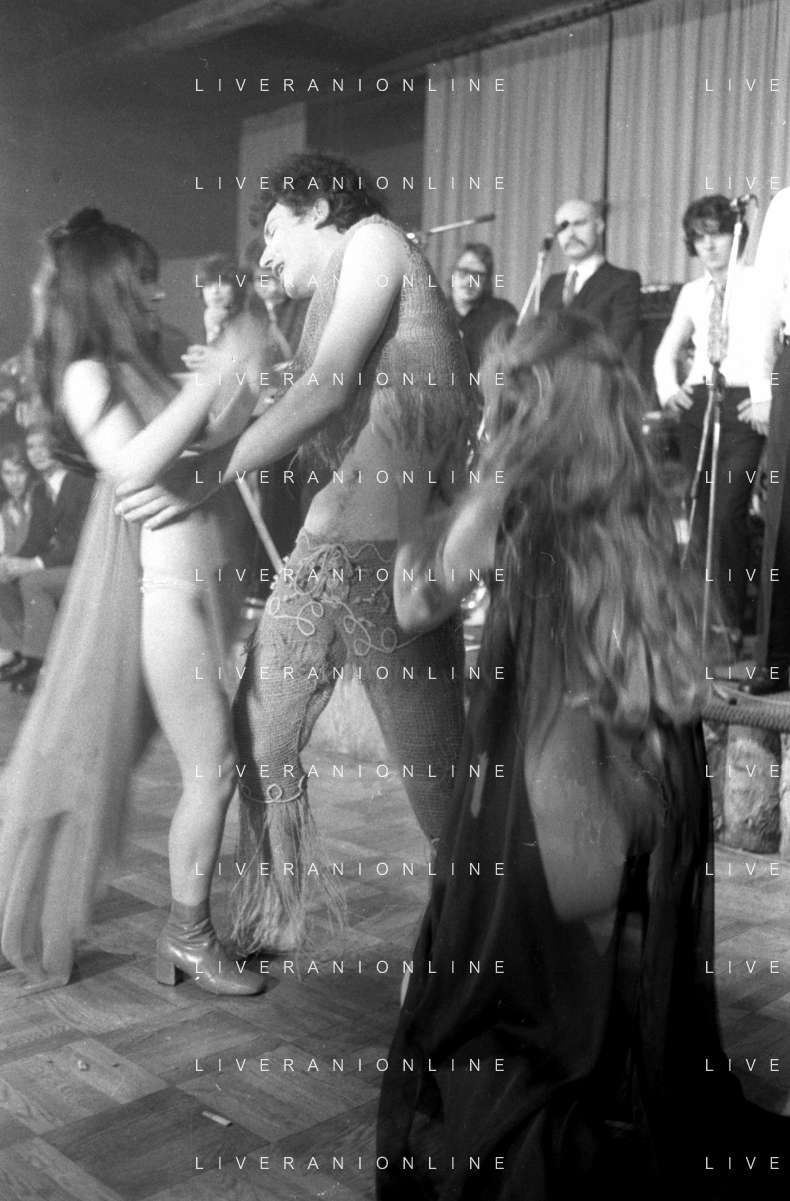 Neg- RETROSPETTIVA VITTORIA SOLINAS (MARIA SOLE) CANTANTE E ATTRICE NELLA FOTO CON IL MARITO ARMANDO STULA E LA SORELLA MARISA DURANTE UNA ESIBIZIONE A MILANO NELL'ANNO 1970 AG ALDO LIVERANI SAS