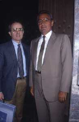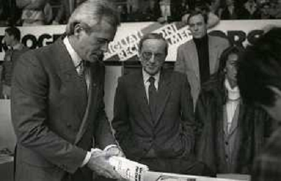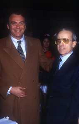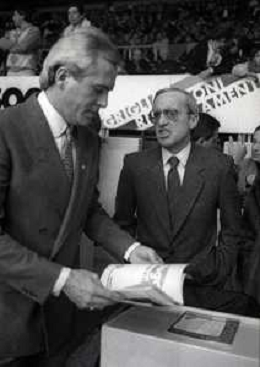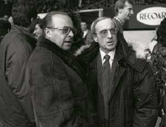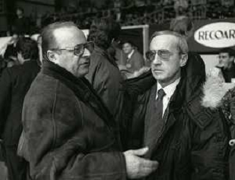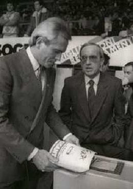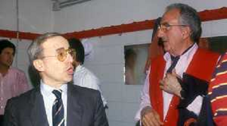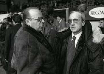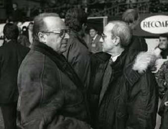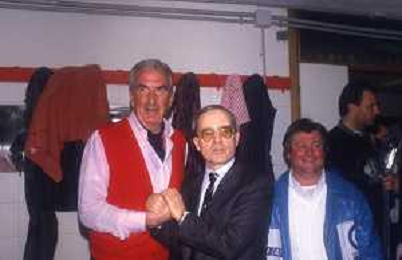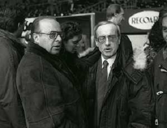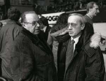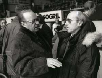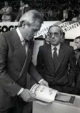 RETROSPETTIVA DAN PETERSON ALLENATORE BASKET NELLA FOTO DAN PETERSON CON ERNESTO PELLEGRINI A MILANO NELL'ANNO 1987 AG ALDO LIVERANI SAS