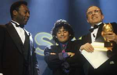 RETROSPETTIVA DAN PETERSON ALLENATORE BASKET NELLA FOTO DAN PETERSON ALLENATORE NELL'ANNO 1987 A MILANO ALLA PREMIAZIONE DELL'AOSCAR DELLO SPORT CON PELE' E DIEGO ARMANDO MARADONA AG ALDO LIVERANI SAS