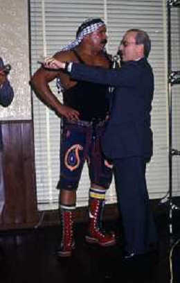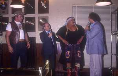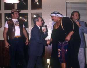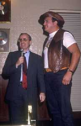 RETROSPETTIVA DAN PETERSON ALLENATORE BASKET NELLA FOTO DAN PETERSON CON OUT BACK JACK NELL'ANNO 1987A MILANO PRESENZIA A UNA PRESENTAZIONE DI WRESTLING AG ALDO LIVERANI SAS