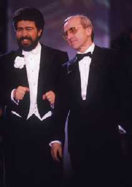 RETROSPETTIVA DAN PETERSON ALLENATORE BASKET NELLA FOTO DAN PETERSON ALLENATORE NELL'ANNO 1987 A MILANO ALLA PREMIAZIONE DELL'AOSCAR DELLO SPORT CON PELE' E AG ALDO LIVERANI SAS