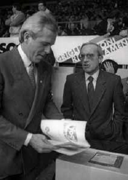 RETROSPETTIVA DAN PETERSON ALLENATORE BASKET NELLA FOTO DAN PETERSON ALLENATORE BASKET CON IL DOTTOR CERVI AG ALDO LIVERANI SAS