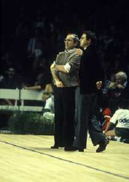 RETROSPETTIVA DAN PETERSON ALLENATORE BASKET NELLA FOTO DAN PETERSON ALLENATORE NELL'ANNO 1986-1987 CON CESARE RUBINI AG ALDO LIVERANI SAS