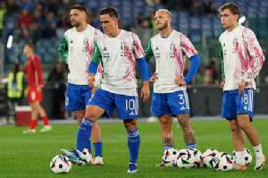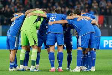 Italy players hug each other in a circle during the UEFA EURO 2024 European qualifier match between Italy and North Macedonia at Stadio Olimpico on November 17, 2023 in Rome, Italy. Photo by Emmanuele Mastrodonato/ag. Aldo Liverani sas
