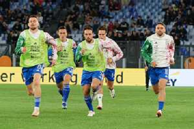 Players of Italy warms up during the UEFA EURO 2024 European qualifier match between Italy and North Macedonia at Stadio Olimpico on November 17, 2023 in Rome, Italy. Photo by Emmanuele Mastrodonato/ag. Aldo Liverani sas