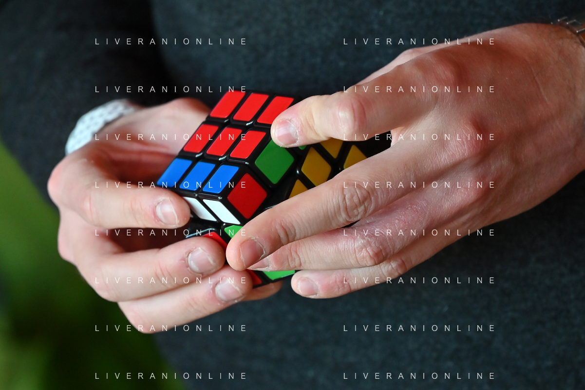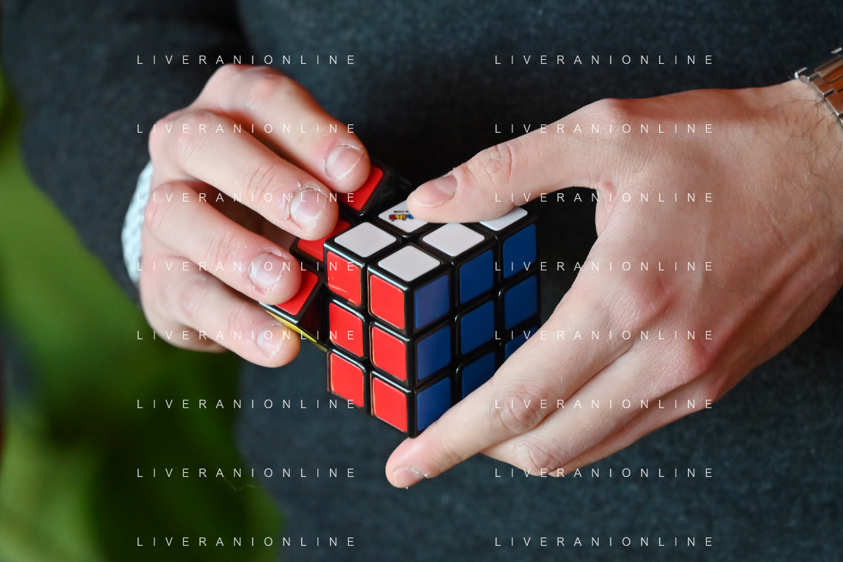 TVRG Erno Rubik cubo nella foto il cubo di Rubik Milano 18-11-2023 Erno Rubik inventore del Cubo di Rubik foto Roberto Garavaglia/ag. Aldo Liverani sas/AGENZIA ALDO LIVERANI SAS
