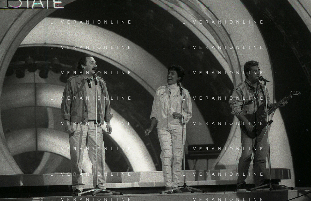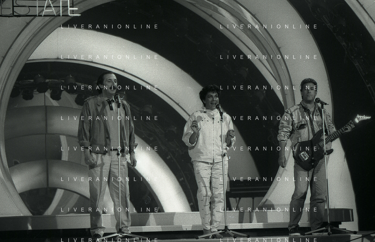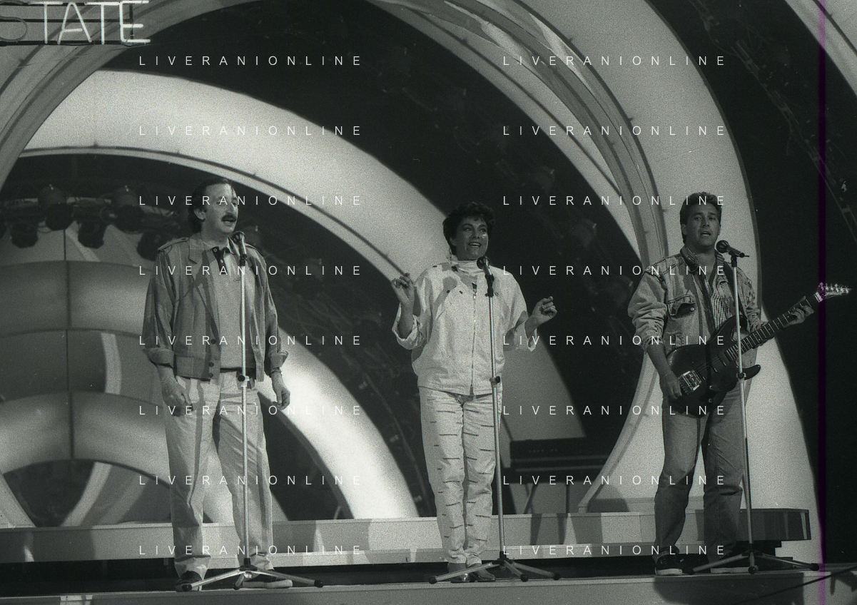 NEG-RETROSPETTIVA RICCHI E POVERI COMPLESSO MUSICALE NELLA FOTO I RICCHI E POVERI A SAINT VINCENT ESTATE NELL'ANNO 1987-ANGELO SOTGIU-ANGELA BRAMBATI E FRANCO GATTI AG ALDO LIVERANI SAS