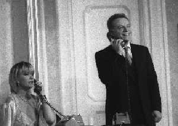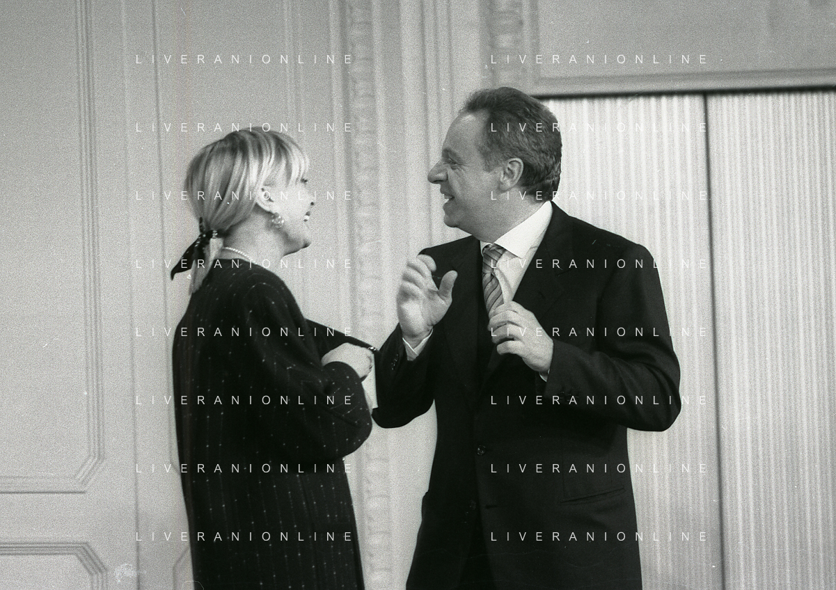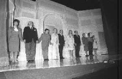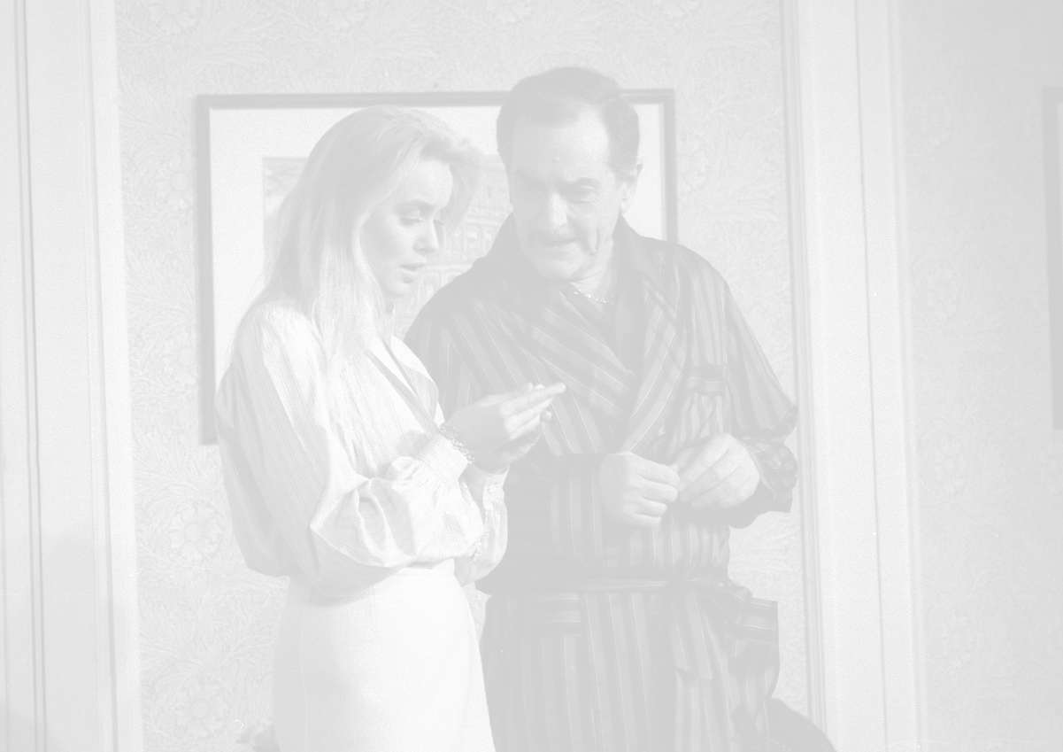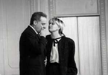 NEG-RETROSPETTIVA JOHNNY DORELLI ATTORE NELLA FOTO JOHNNY DORELLI CON GLORIA GUIDA -PAOLA QUATTRINI E RICCARDO GARRONE NELLA COMMEDIA TEATRALE“ SE DEVI DIRE UNA BUGIA DILLA GROSSA“A MILANO NELL'ANNO 1985 GLORIA GUIDA CON GIANLUCA GUIDI AG ALDO LIVERANI SAS