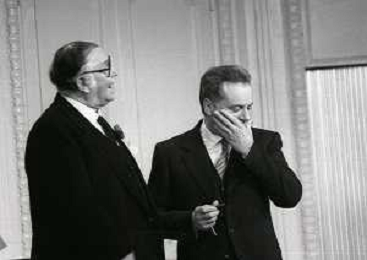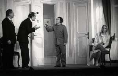 NEG-RETROSPETTIVA JOHNNY DORELLI ATTORE NELLA FOTO JOHNNY DORELLI CON GLORIA GUIDA -PAOLA QUATTRINI E RICCARDO GARRONE NELLA COMMEDIA TEATRALE“ SE DEVI DIRE UNA BUGIA DILLA GROSSA“A MILANO NELL'ANNO 1985 JOHNNY DORELLI CON IL FIGLIO AG ALDO LIVERANI SAS