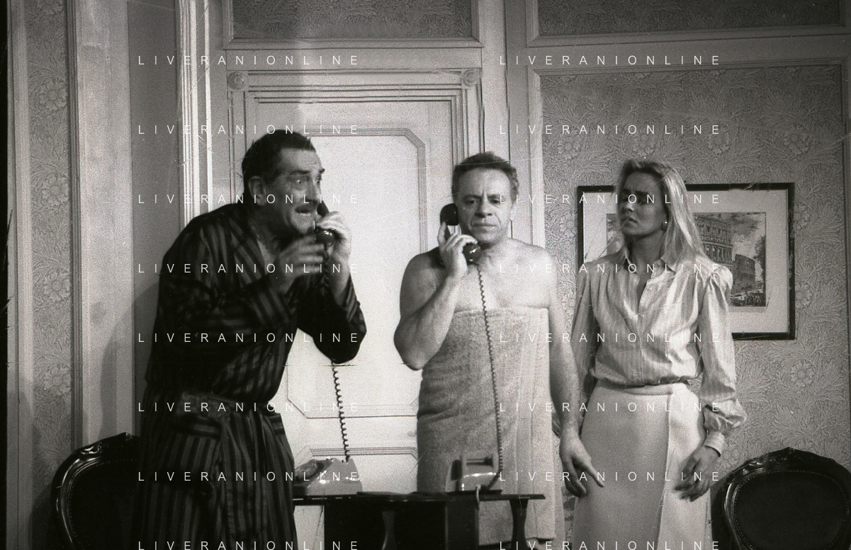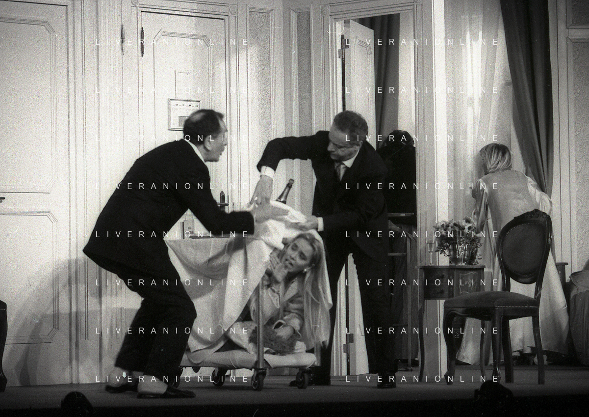 JOHNNY DORELLI CON GLORIA GUIDA -PAOLA QUATTRINI E RICCARDO GARRONE NELLA COMMEDIA TEATRALE“ SE DEVI DIRE UNA BUGIA DILLA GROSSA“A MILANO NELL'ANNO 1985 - 48 file