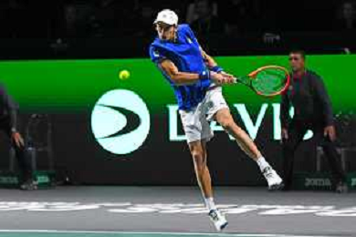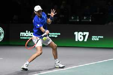 Italia-Olanda 23 Novembre 2023 Final 8 Davis Cup Malaga PalaSport Juan Martin Carpena Nella foto: Lorenzo Sonego FOTO ANDREA ROSITO-AG ALDO LIVERANI SAS