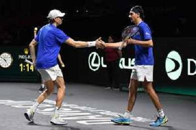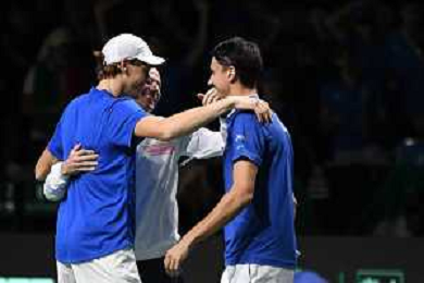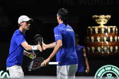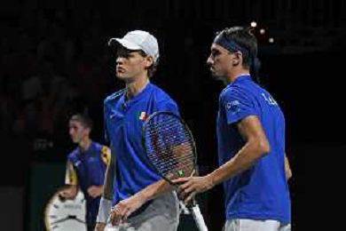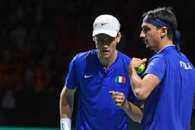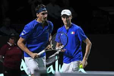 Italia-Olanda 23 Novembre 2023 Final 8 Davis Cup Malaga PalaSport Juan Martin Carpena Nella foto: Lorenzo Sonego e Jannik Sinner FOTO ANDREA ROSITO-AG ALDO LIVERANI SAS
