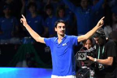 Italia-Olanda 23 Novembre 2023 Final 8 Davis Cup Malaga PalaSport Juan Martin Carpena Nella foto: Lorenzo Sonego ©Andrea Rosito/AGENZIA ALDO LIVERANI SAS
