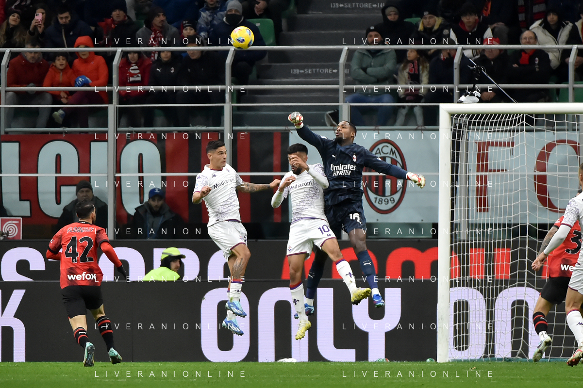 Milan vs Fiorentina nella foto Mike Maignan (Milan) in uscita Milano 25-11-2023 Stadio Giuseppe Meazza - San Siro Campionato Serie A TIM - 13a giornata foto Roberto Garavaglia/ag. Aldo Liverani sas/AGENZIA ALDO LIVERANI SAS