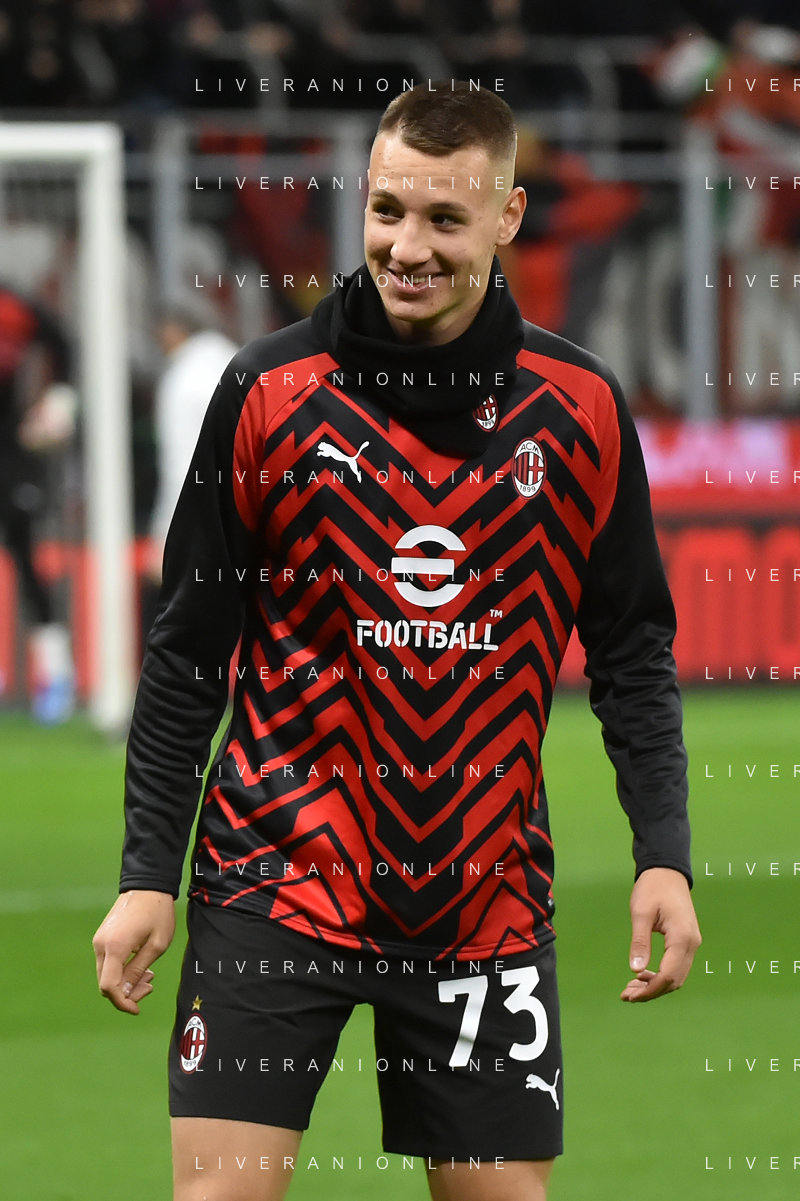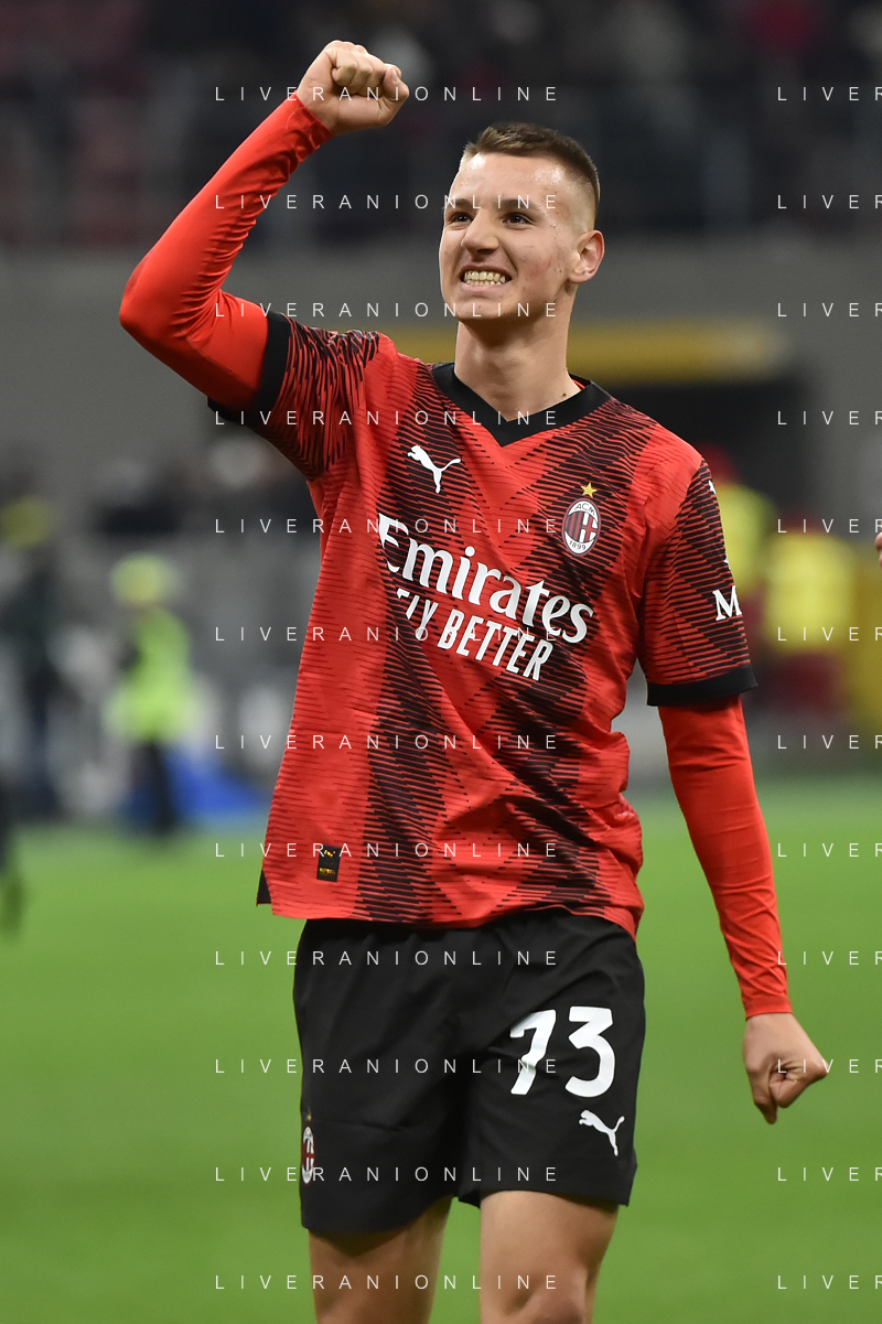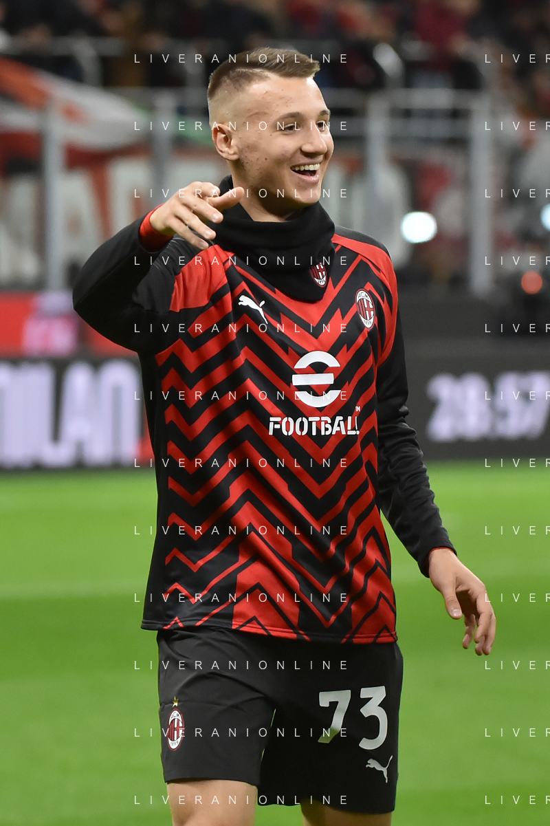 Milan vs Fiorentina nella foto Francesco Camarda (Milan) entra in campo al posto di Luka Jovic (Milan) Milano 25-11-2023 Stadio Giuseppe Meazza - San Siro Campionato Serie A TIM - 13a giornata foto Roberto Garavaglia/ag. Aldo Liverani sas/AGENZIA ALDO LIVERANI SAS