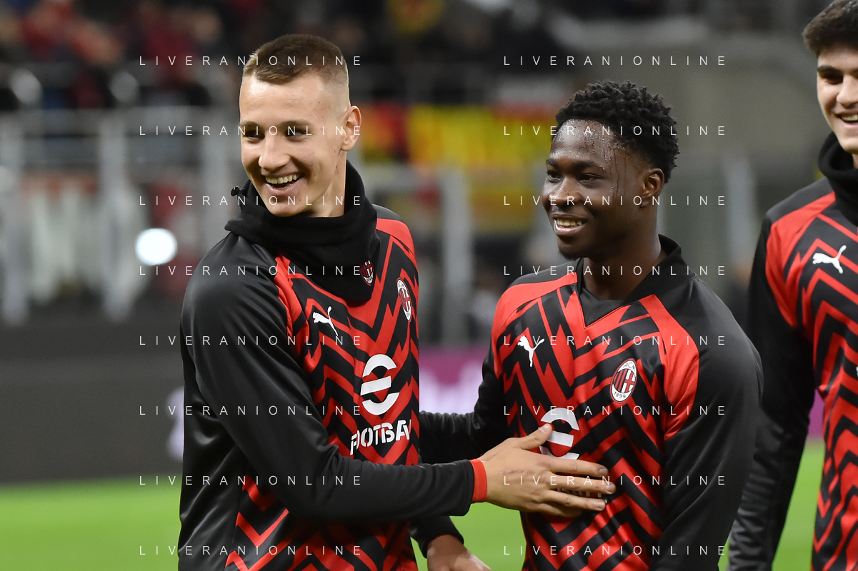 Milan vs Fiorentina nella foto Francesco Camarda (Milan) SX e Chaka Traore' (Milan) DX Milano 25-11-2023 Stadio Giuseppe Meazza - San Siro Campionato Serie A TIM - 13a giornata foto Roberto Garavaglia/ag. Aldo Liverani sas/AGENZIA ALDO LIVERANI SAS