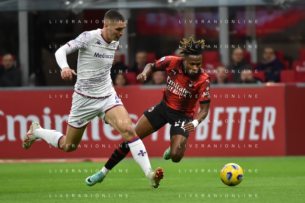 Milan vs Fiorentina nella foto Nikola Milenkovic (Fiorentina) e Samuel Chukwueze (Milan) Milano 25-11-2023 Stadio Giuseppe Meazza - San Siro Campionato Serie A TIM - 13a giornata foto Roberto Garavaglia/ag. Aldo Liverani sas/AGENZIA ALDO LIVERANI SAS