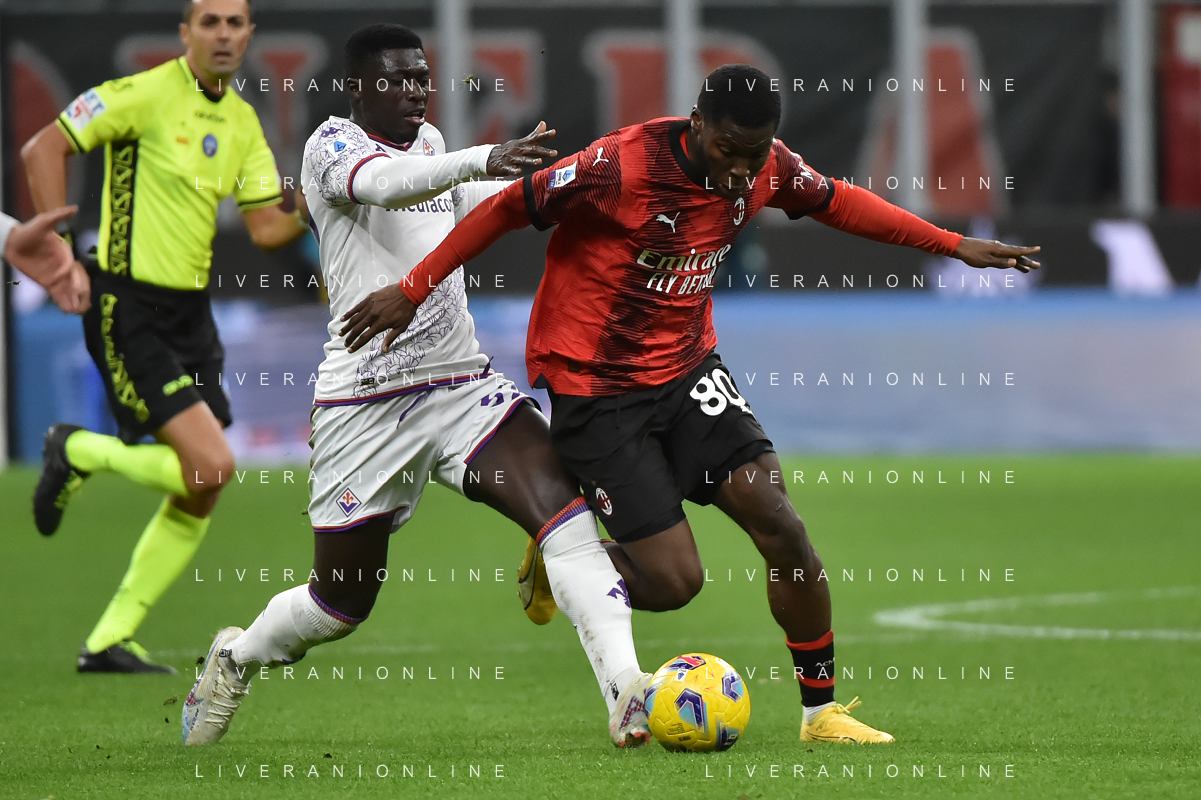Milan vs Fiorentina nella foto Alfred Duncan (Fiorentina) e Yunus Musah (Milan) Milano 25-11-2023 Stadio Giuseppe Meazza - San Siro Campionato Serie A TIM - 13a giornata foto Roberto Garavaglia/ag. Aldo Liverani sas/AGENZIA ALDO LIVERANI SAS