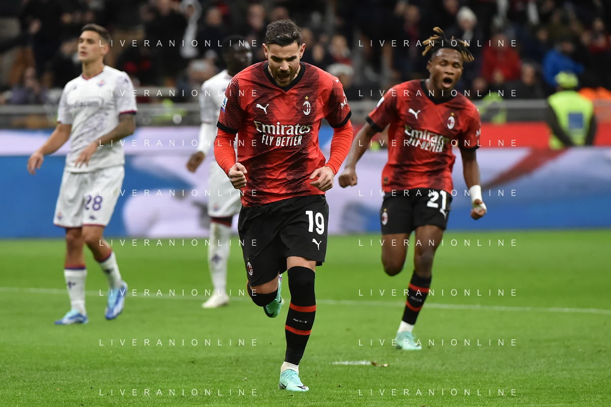 Milan vs Fiorentina nella foto Theo Hernandez (Milan) segna il gol dell'1 a 0 Milano 25-11-2023 Stadio Giuseppe Meazza - San Siro Campionato Serie A TIM - 13a giornata foto Roberto Garavaglia/ag. Aldo Liverani sas/AGENZIA ALDO LIVERANI SAS