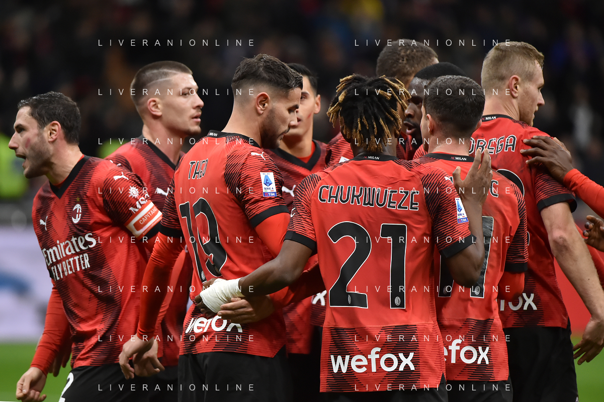 Milan vs Fiorentina nella foto esultanza Milan dopo il gol dell'1 a 0 Milano 25-11-2023 Stadio Giuseppe Meazza - San Siro Campionato Serie A TIM - 13a giornata foto Roberto Garavaglia/ag. Aldo Liverani sas/AGENZIA ALDO LIVERANI SAS