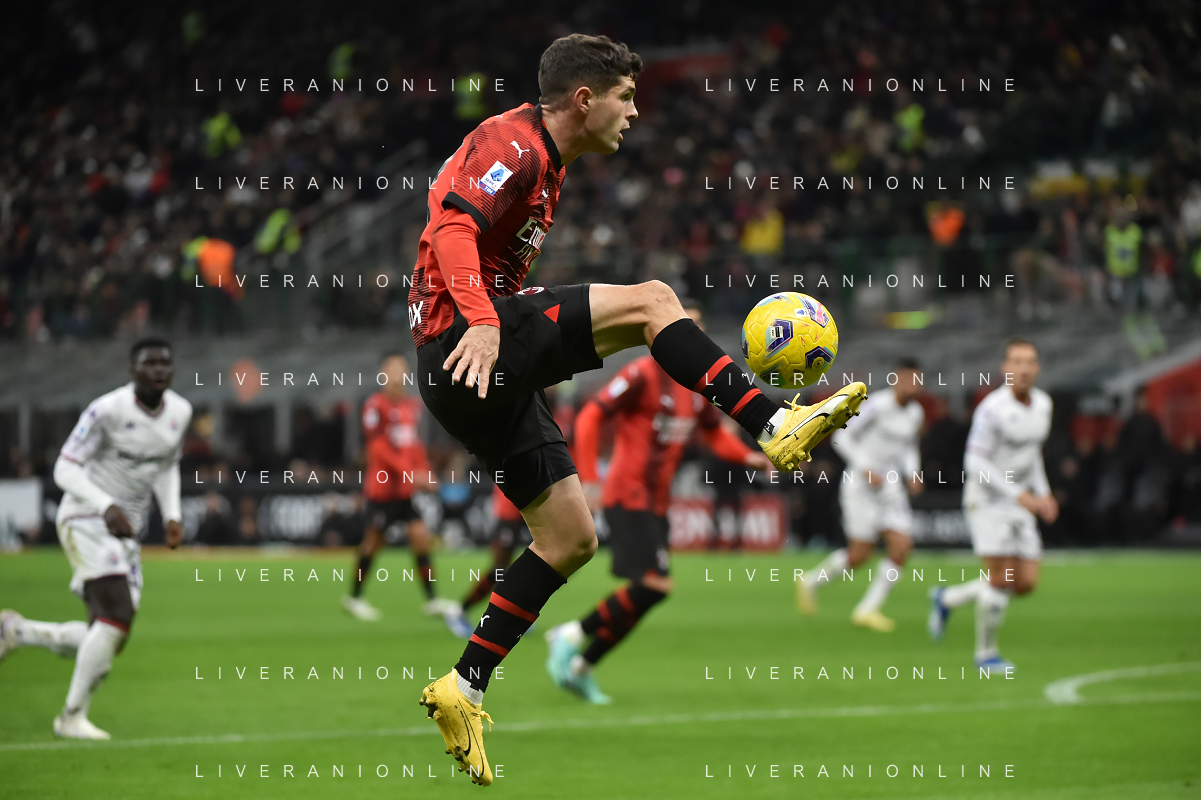 Milan vs Fiorentina nella foto Christian Mate Pulisic (Milan) Milano 25-11-2023 Stadio Giuseppe Meazza - San Siro Campionato Serie A TIM - 13a giornata foto Roberto Garavaglia/ag. Aldo Liverani sas/AGENZIA ALDO LIVERANI SAS