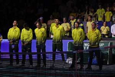 Team Australia during the Finals Davis Cup 2023 match Italy vs Australia the Palacio de Deportes José María Martín Carpenaa, Spain in Malaga on November 26, 2023 ©Andrea Rosito/AGENZIA ALDO LIVERANI SAS