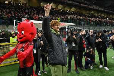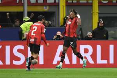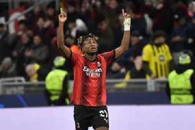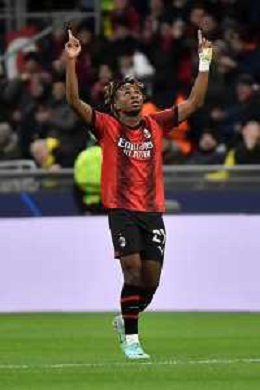 Milan vs Borussia Dortmund nella foto Samuel Chukwueze (Milan) esulta dopo il gol dell'1 a 1 Milano 28-11-2023 Stadio Giuseppe Meazza - San Siro UEFA Champions League fase a gironi 5a giornata - Gruppo F foto Roberto Garavaglia/ag. Aldo Liverani sas