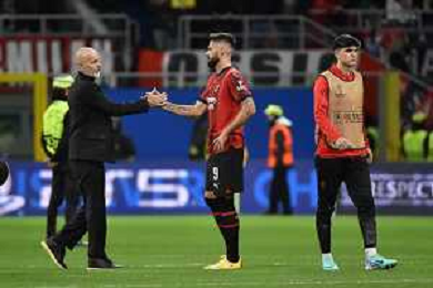 Milan vs Borussia Dortmund nella foto Stefano Pioli allenatore Milan e Olivier Giroud (Milan) delusione a fine gara Milano 28-11-2023 Stadio Giuseppe Meazza - San Siro UEFA Champions League fase a gironi 5a giornata - Gruppo F foto Roberto Garavaglia/ag. Aldo Liverani sas/AGENZIA ALDO LIVERANI SAS