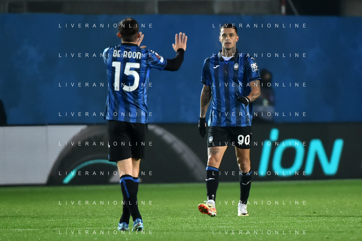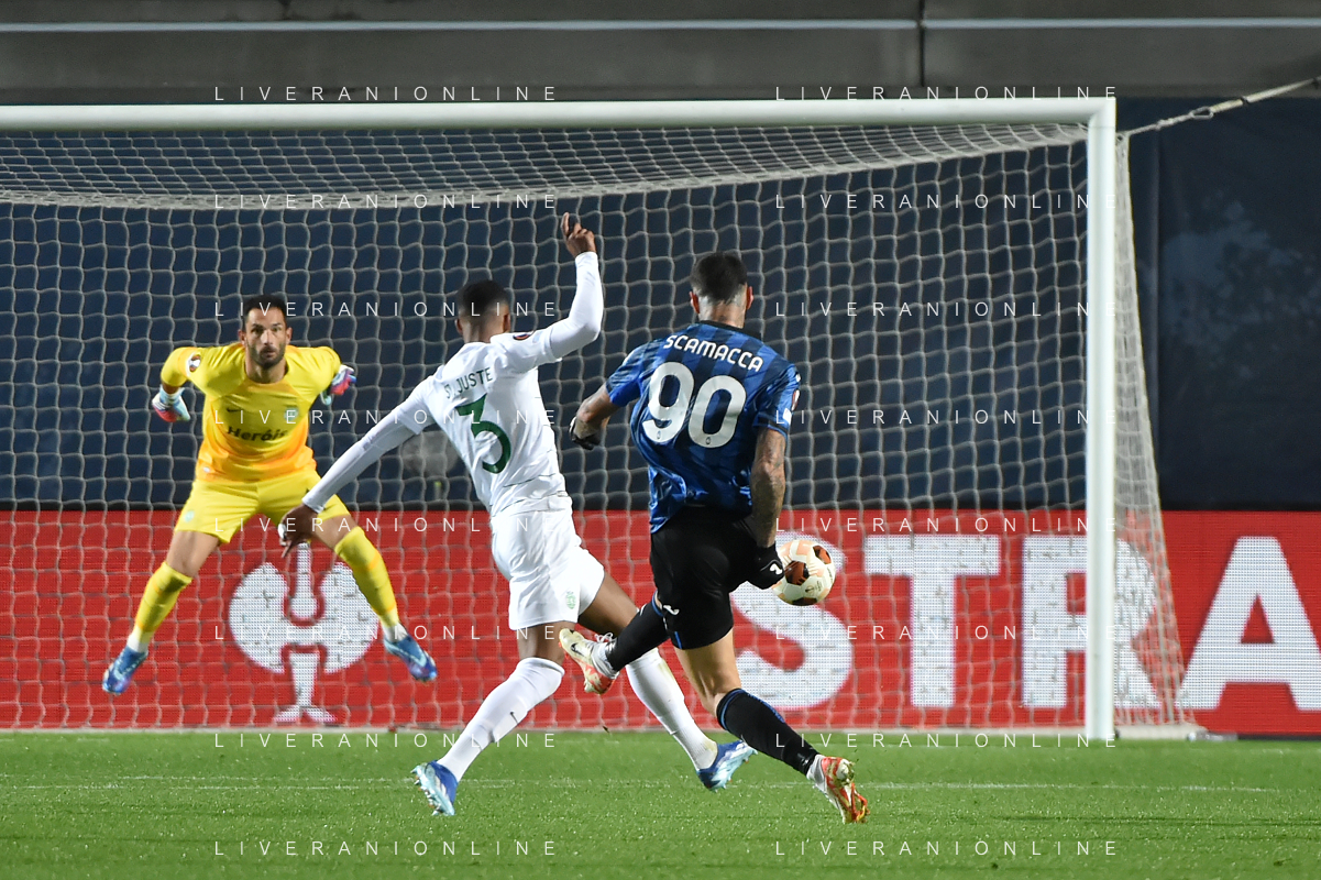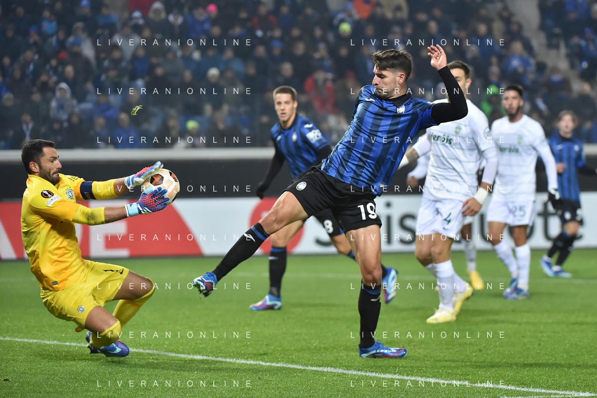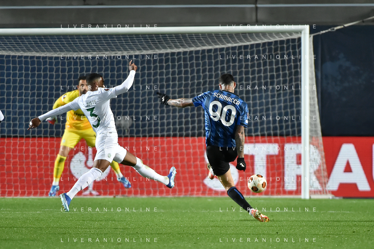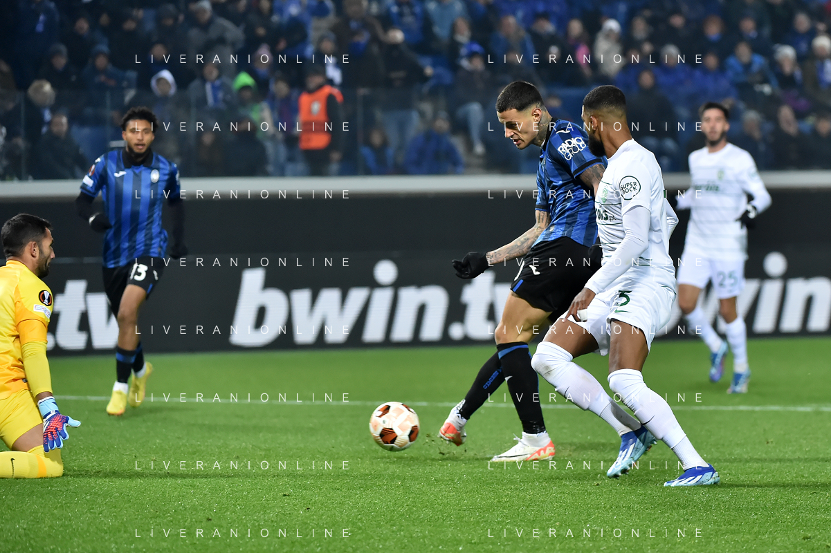 TVRG Atalanta vs Sporting Lisbona nella foto formazione Sporting Lisbona, in piedi da SX un magazziniere, Jeremiah Israel St. Juste, Viktor Elnar Gyokeres, Ousmane Diomande, Goncalo Bernardo Inacio, Morten Hjulmand e Antonio Adan Garrido; in basso da SX Pedro Antonio Goncalves, Hidemasa Morita, Matheus Reis de Lima, Ricardo de Sousa Esgaio e Francisco Antonio Trincao Bergamo 30-11-2023 Gewiss Stadium - Stadio Atleti Azzurri d'Italia UEFA Europa League - fase a gironi Gruppo D - 5a giornata foto Roberto Garavaglia/ag. Aldo Liverani sas