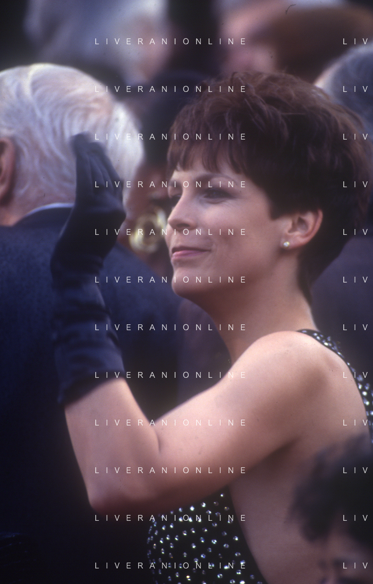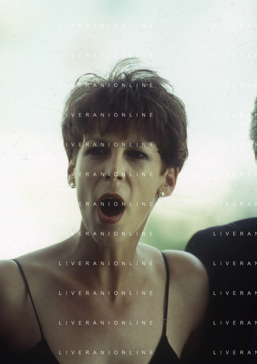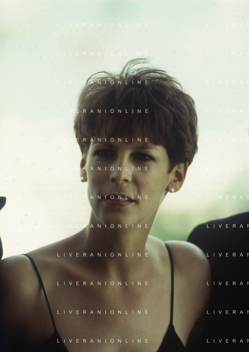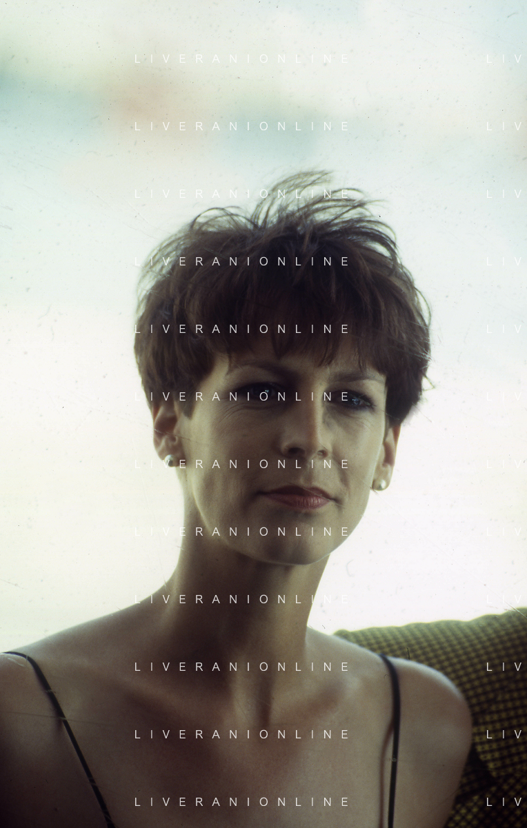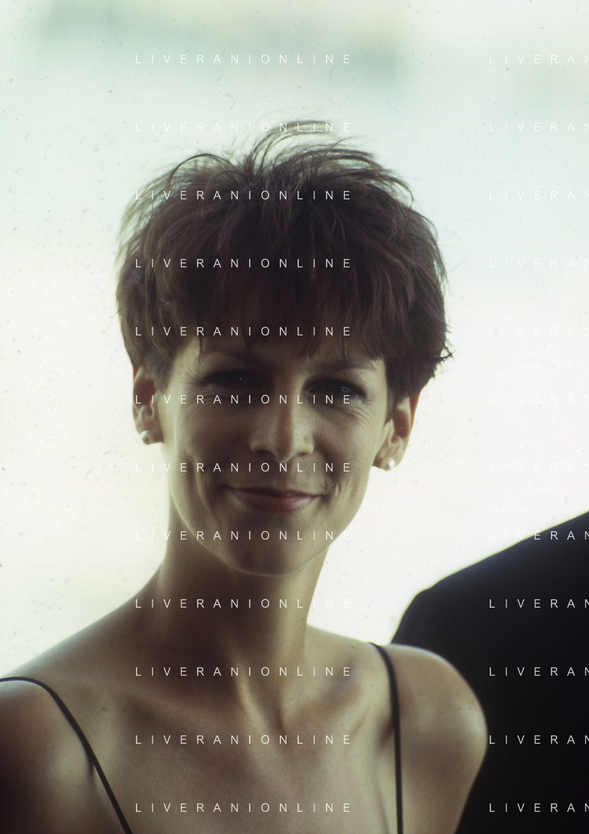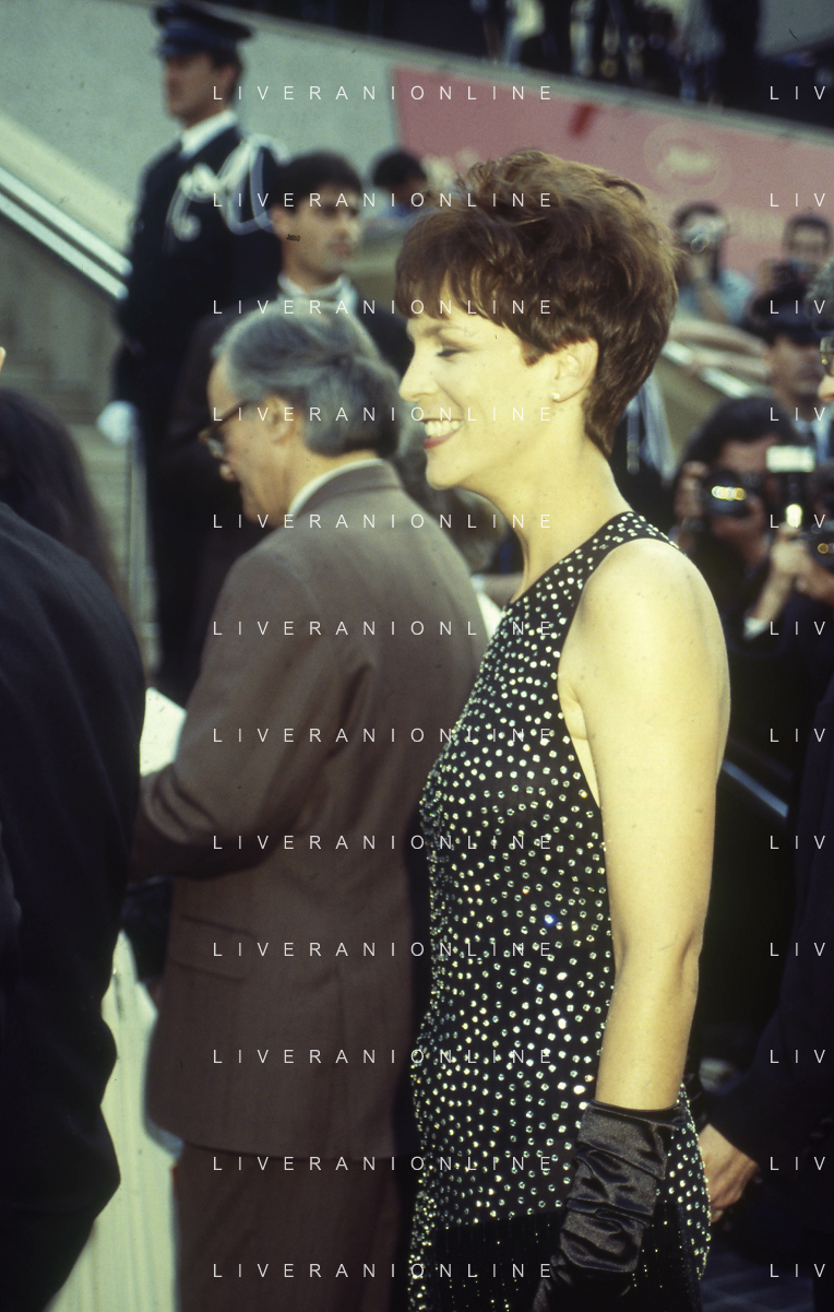 DIAP-RETROSPETTIVA JAMIE LEE CURTIS ATTRICE NELLA FOTO JAMIE LEE CURTIS NELL'ANNO 1992 A CANNES CON GERARD DEPARDIEU E PEDRO ALMODOVAR AG ALDO LIVERANI SAS
